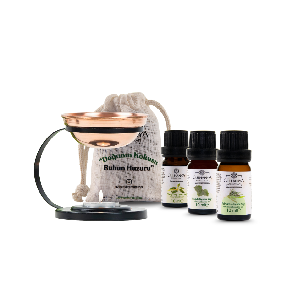 Aşk Buhur Seti Plus, klasik setin tamamlayıcısı olan kase temalı bakır buhurdanlık ile birlikte gelir. El işçiliğiyle üretilmiş buhurdanlık, uçucu yağların kokusunu yumuşak biçimde ortama yayarak aromaterapi deneyiminizi zenginleştirir. Estetik görünümüyle hem dekoratif hem de işlevsel bir tamamlayıcıdır.