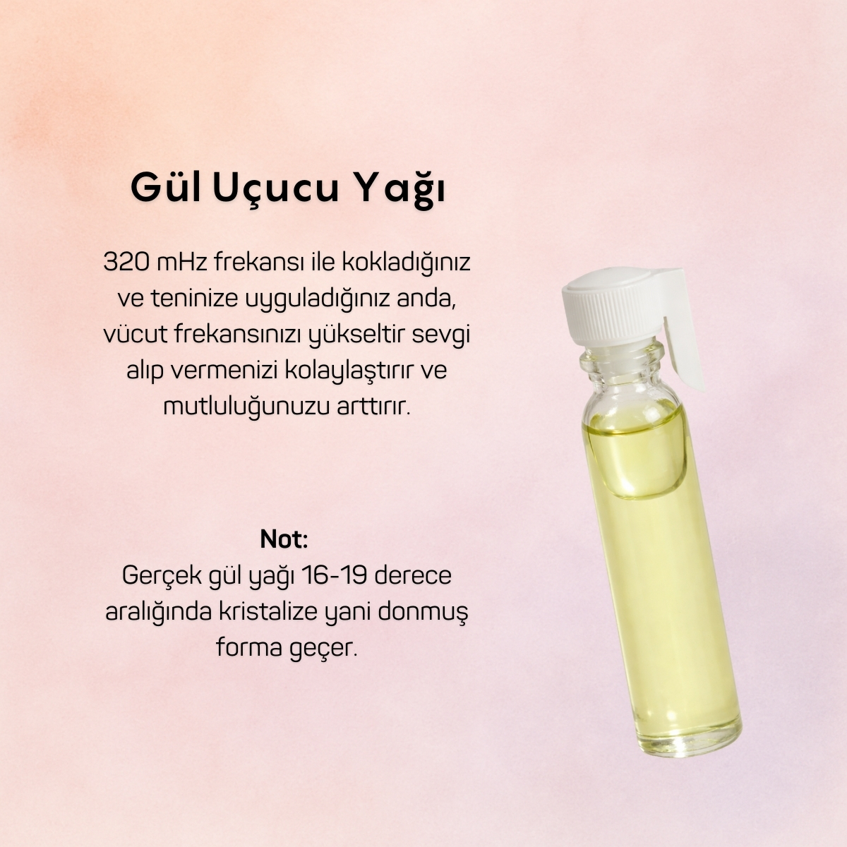 Gül çiçeğinden su buharı distilasyonu ile %100 doğal olarak üretilmiş uçucu yağdır.