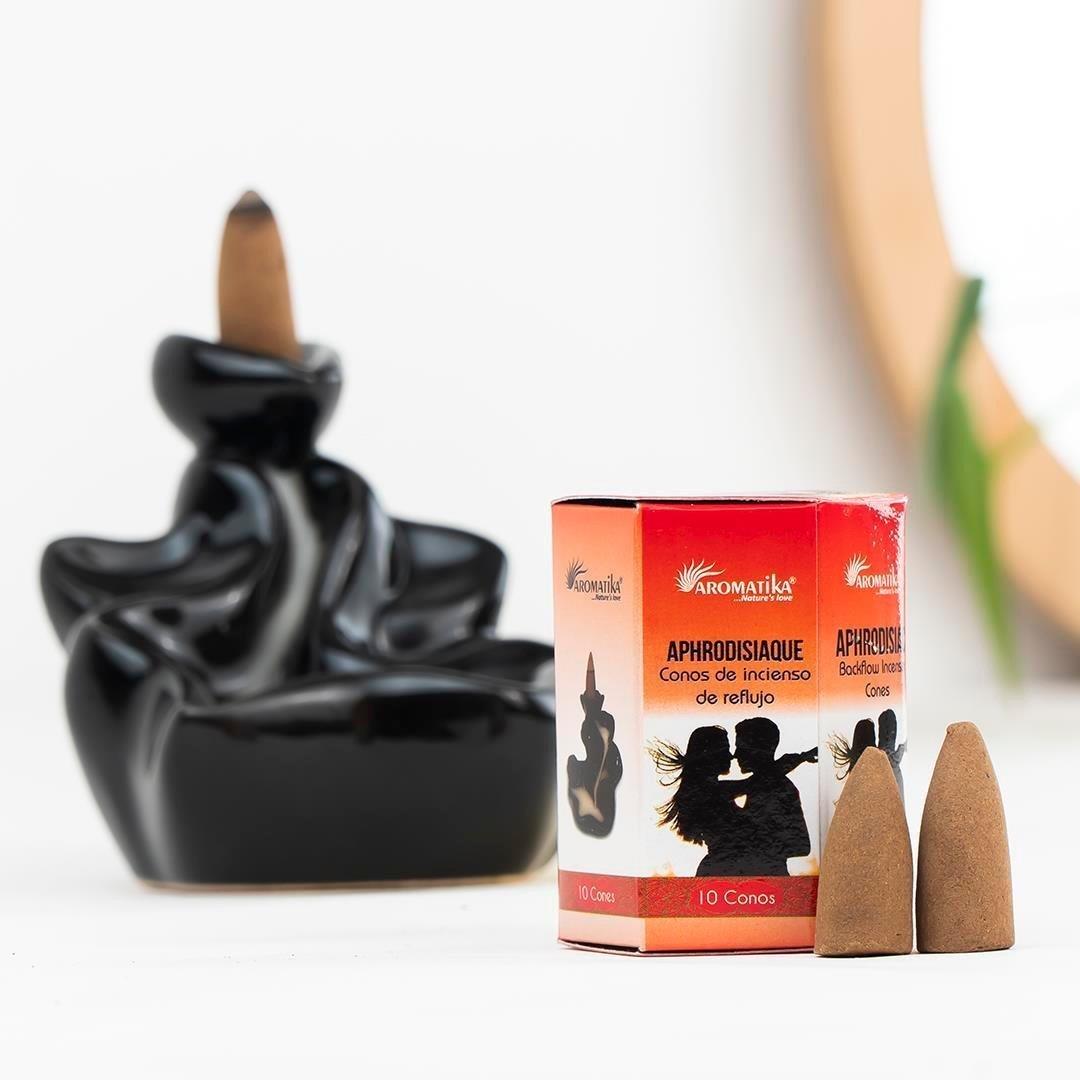 Afrodizyak Geri Akış Konik Tütsü, geri akış tütsülüğe dengeli şekilde yerleştirilir. Sivri ucundan kibrit veya çakmak yardımıyla yakılır. Kullanım sırasında ortamın düzenli olarak havalandırılması tavsiye edilir.