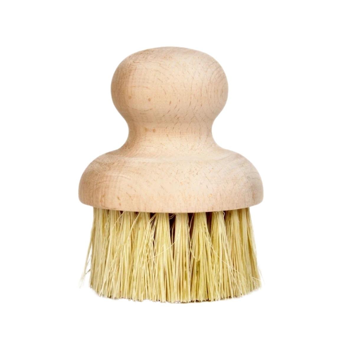 Yaklaşık 8 cm çapındaki kompakt tasarımı, kolay kavrama ve rahat kullanım sağlarken; doğal ahşap gövdesi ve bitkisel kılları sayesinde yüzeyleri çizmeden temizler. Vegan kullanıma uygun olan bu fırça, hayvansal içerik barındırmaz ve %100 sürdürülebilir malzemelerden üretilmiştir.