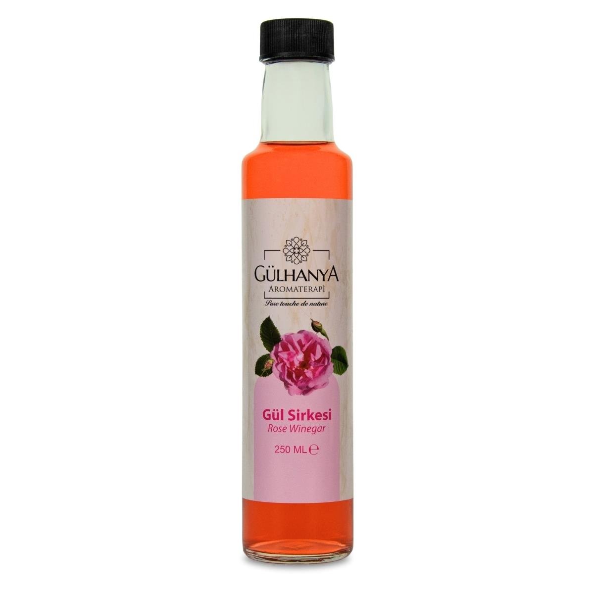Gül Sirkesi, Rosa damascena gülleri, doğal yağlı gül suyu, içme suyu ve bitkisel şeker ile yaklaşık 20 aylık doğal fermantasyon süreci sonucu elde edilmiştir. İçeriğinde hiçbir katkı veya koruyucu madde bulunmaz. Gülhanya Aromaterapi’nin özenle hazırladığı bu sirke, geleneksel yöntemlerle fermente edilmiş, %100 saf bir üründür. Ürün, 250 ml geri dönüştürülebilir, gıda kullanımına uygun şeffaf dorika cam şişede sunulmaktadır.