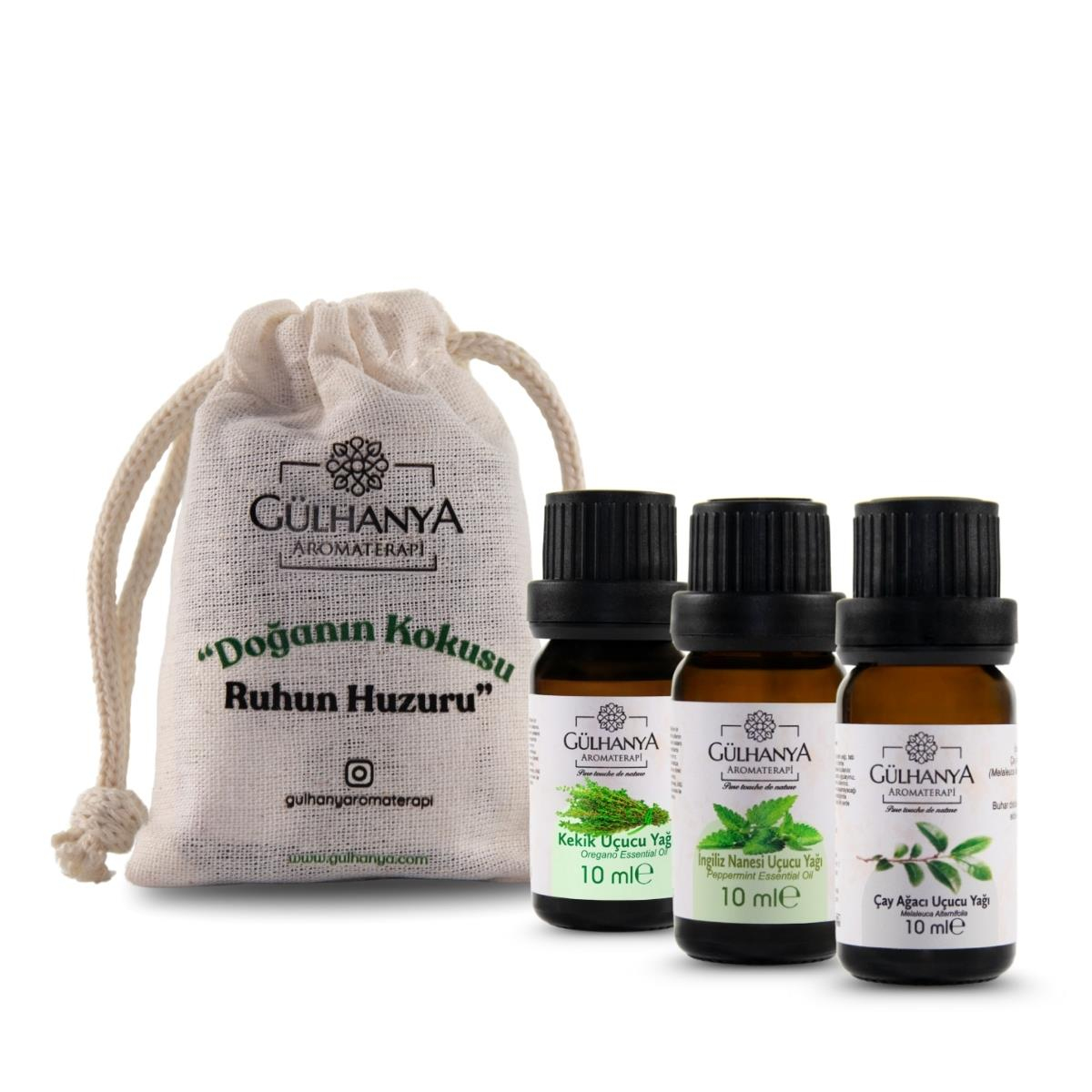 Doğanın dokunuşunu evinize taşımak için hazırlanan Koruyucu Buhur Seti, Kekik Uçucu Yağı, Çay Ağacı Uçucu Yağı ve Nane Uçucu Yağı ile yaşam alanlarınıza ferah bir atmosfer sunar. Set olarak sunulduğu için hem avantajlı hem de indirimli bir seçenektir. Set içeriğinde ki uçucu yağlar 10ml amber renk geri dönüştürülebilir cam ambalajda sunulmaktadır.