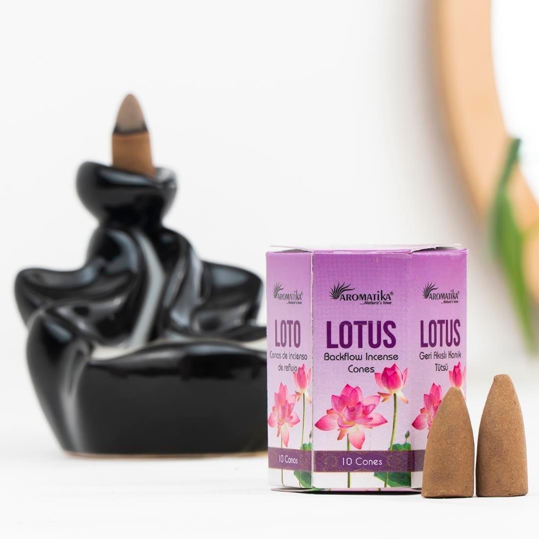 Lotus Geri Akış Konik, geri akış tütsülüğe dengede duracak şekilde yerleştirilir. Sivri kısmından çakmak veya kibrit ile yakılır. Kullanım sırasında ortamın düzenli olarak havalandırılması tavsiye edilir.